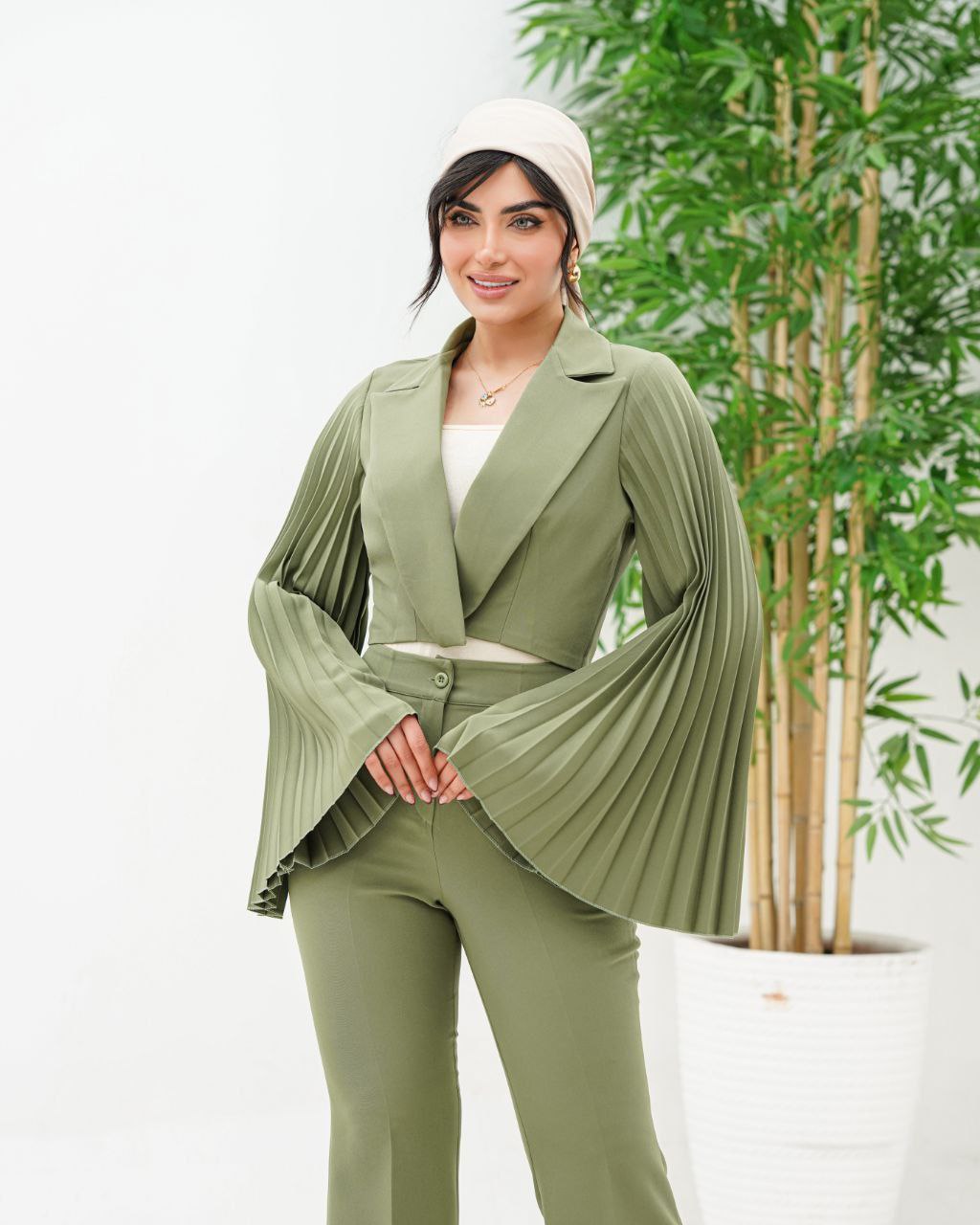 کت شلوار زنانه مزونی آستین پلیسهتماس بگیرید