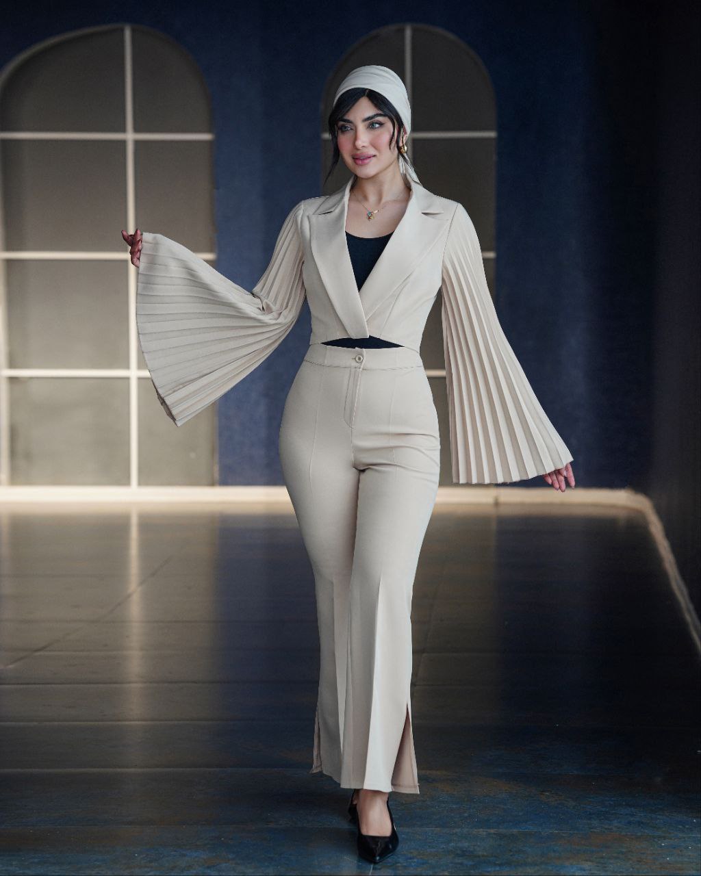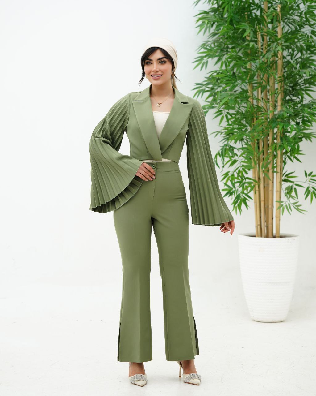 کت کراپ شلوار استین پلیسه مدل اهورا