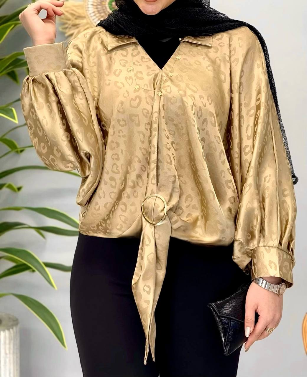 شومیز ساتن طرح پلنگی وارداتی