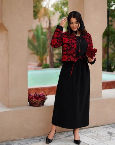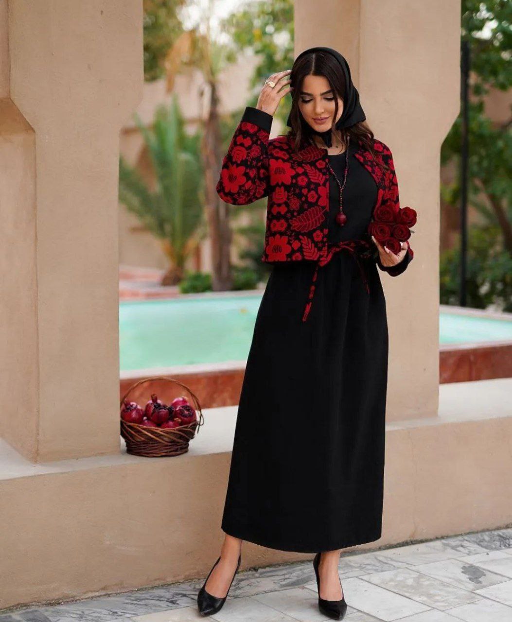 ست دوتیکه ناردون 😍 کت , سارافون و کمربند کنفی قرمز مشکی