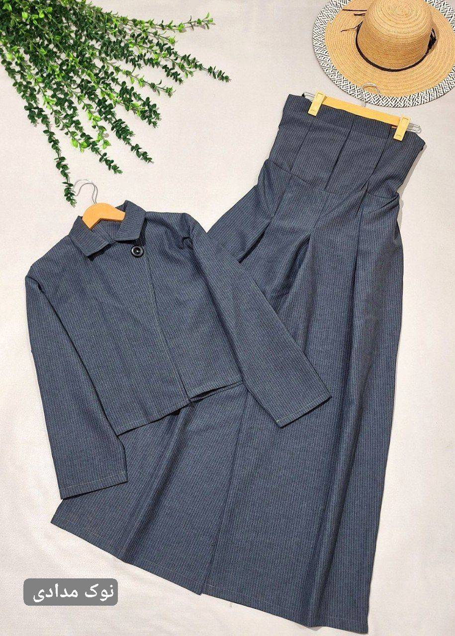 👚نام : کت و اورال مهرسا 👗🌹دورسینه کت 110 🌹قد کت 50 🌹قد استین از دوخت سر شانه 55 🌹دوربازو 36 🌹قد اورال حدودا 125 🌹دور ران 74 🌹عرض دمپا 33 🧵جنس : مکانیک دیپلمات درجه یک 🖌 رنگ بندی : مشکی - سورمه ای - نوک مدادی - ⚜️ سایز ها : 38/46 تعویض و مرجوعی نداریم