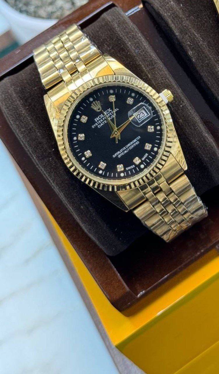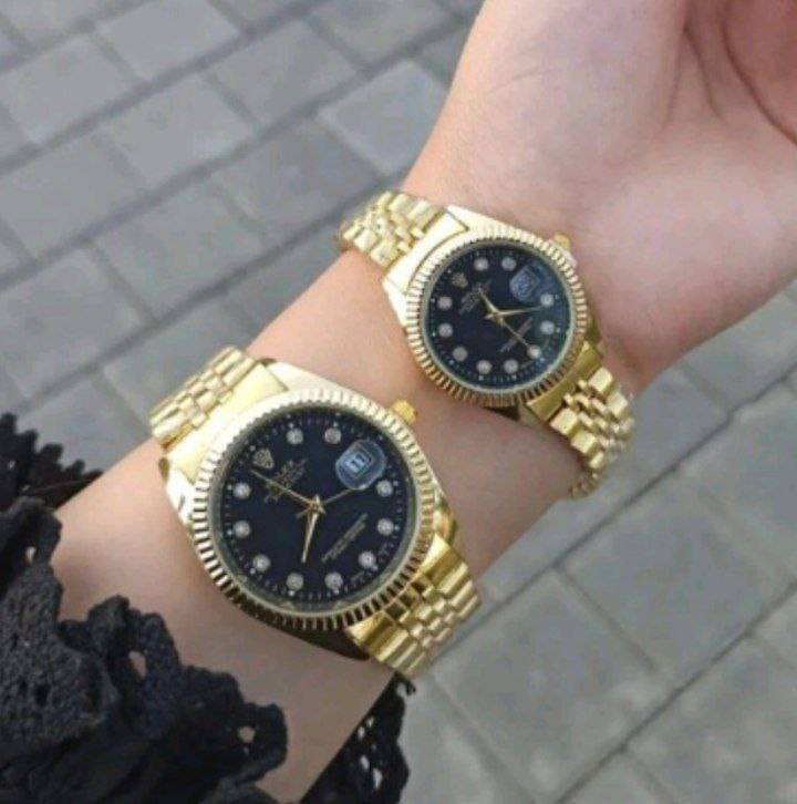 🆔 شناسه : #81416 نام : ست ساعت رولکس زنانه و مردانه باهم بنداستیل طلایی مشکی . شیشه ذره بینی کیفیت عالی. تقویم دار. شش ماه گارانتی موتور دارای جعبه کادویی بالشتک دار قطر صفحه مردانه 3 سانت قطر صفحه زنانه 2 سانت تقریبا پرفرووووش لاکچری پسند شیک و عالی مناسب استفاده روزمره فوق العاده ❤️ جنس : بند استیل ⚜️ سایز ها : set
