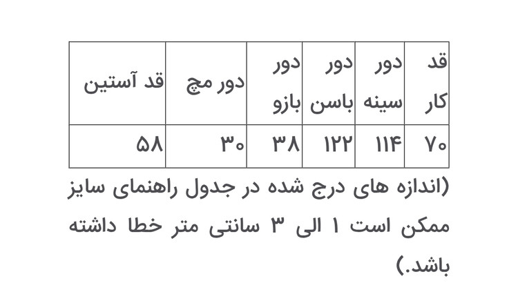 سایز : فری سایز بوده و برای سایز 36 تا 44 مناسب است