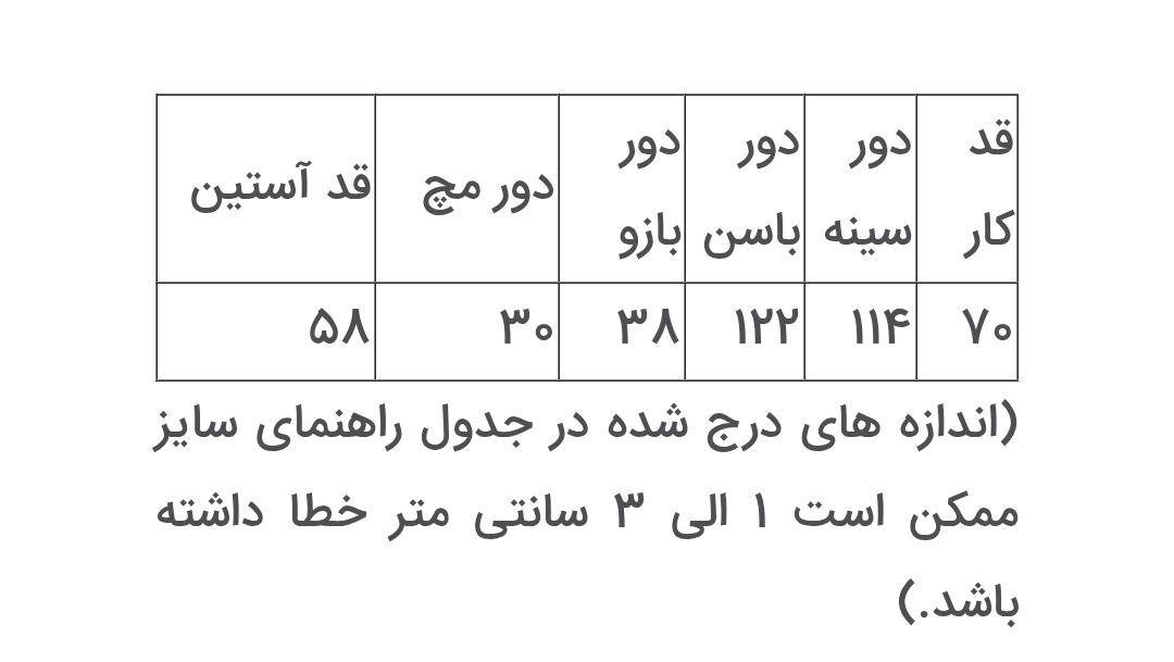 سایز : فری سایز بوده و برای سایز 36 تا 44 مناسب است