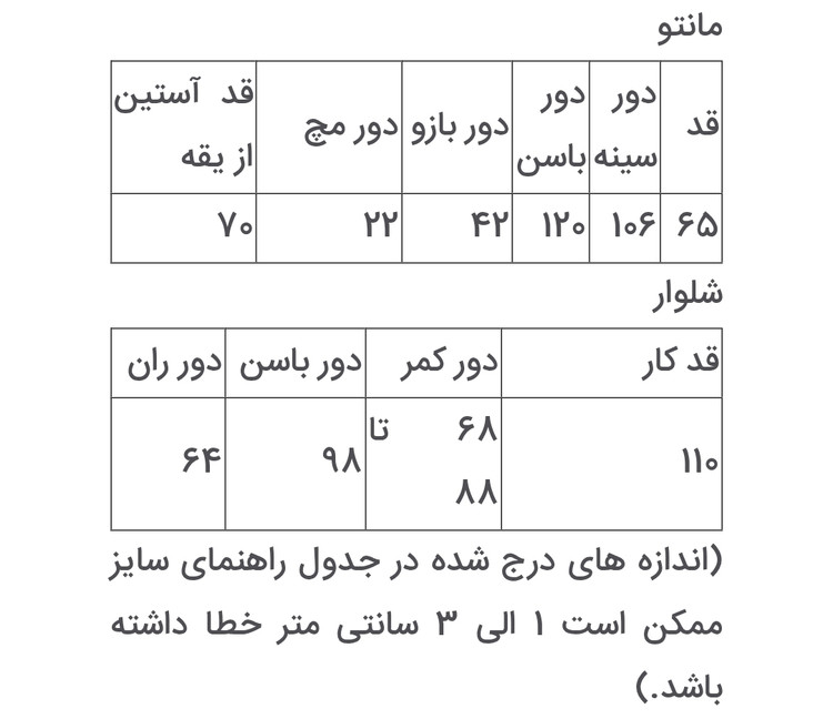 مانتو این ست تنخورى آزاد وراحت داشته و داراى ایستایى شیكى در تن مى باشد.