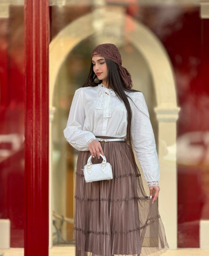 شال پلیسه برشکا دور دانتل سرمه ای،مشکی،قهوه ای