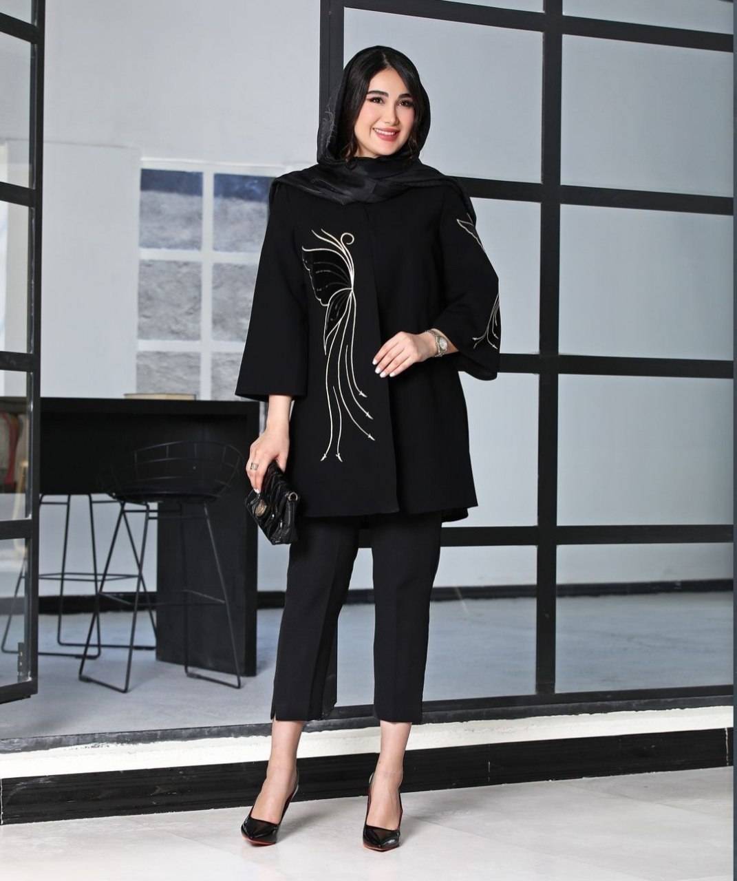 مانتو کتی پروانه گلدوزی شده